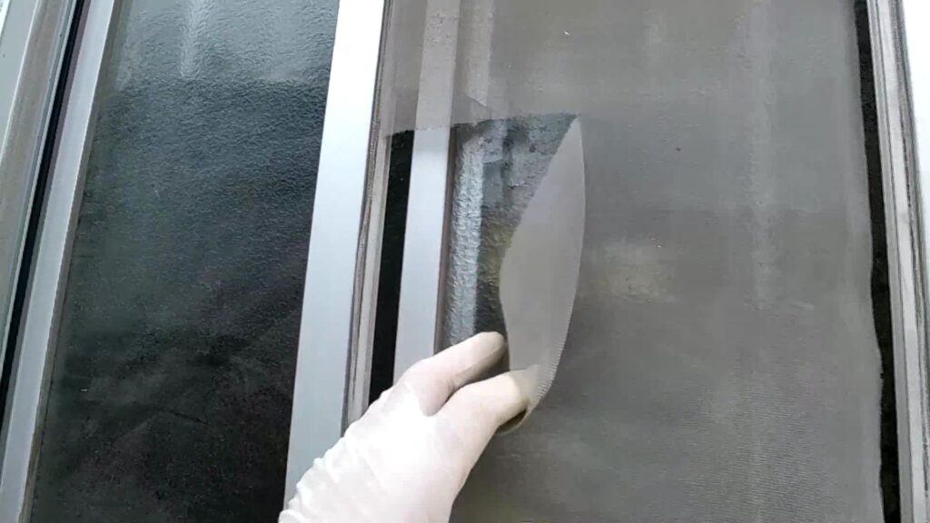 アルミサッシの網戸の枠になり網用の溝にゴミが付着していたので