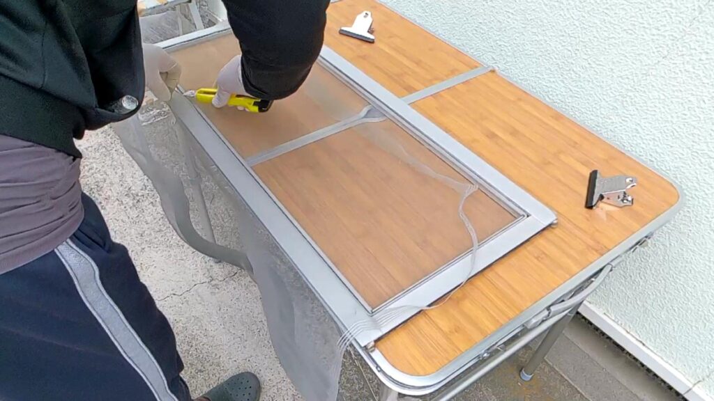 終わりましたら余分な網をカッターで4隅を切り終了しました。